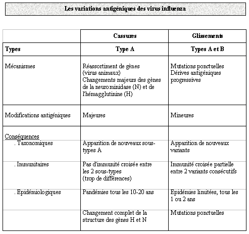 - D'autant que les virus grippaux sont sujets à des variations antigéniques : sauts pour les virus influenza A et glissements pour les virus influenza A et B.