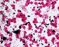 A l'examen clinique, le médecin constate la présence de quelques râles inconstants dans le champ pulmonaire droit. Il remarque également que la patiente a tendance à tousser. Questionnée à ce sujet, sa fille confirme qu'elle tousse depuis quelques jours, et que la toux sèche du début est devenue productive. La patiente est assez confuse, mais il est difficile d'apprécier s'il y a une aggravation de ses fonctions cognitives, étant donné son âge avancé.